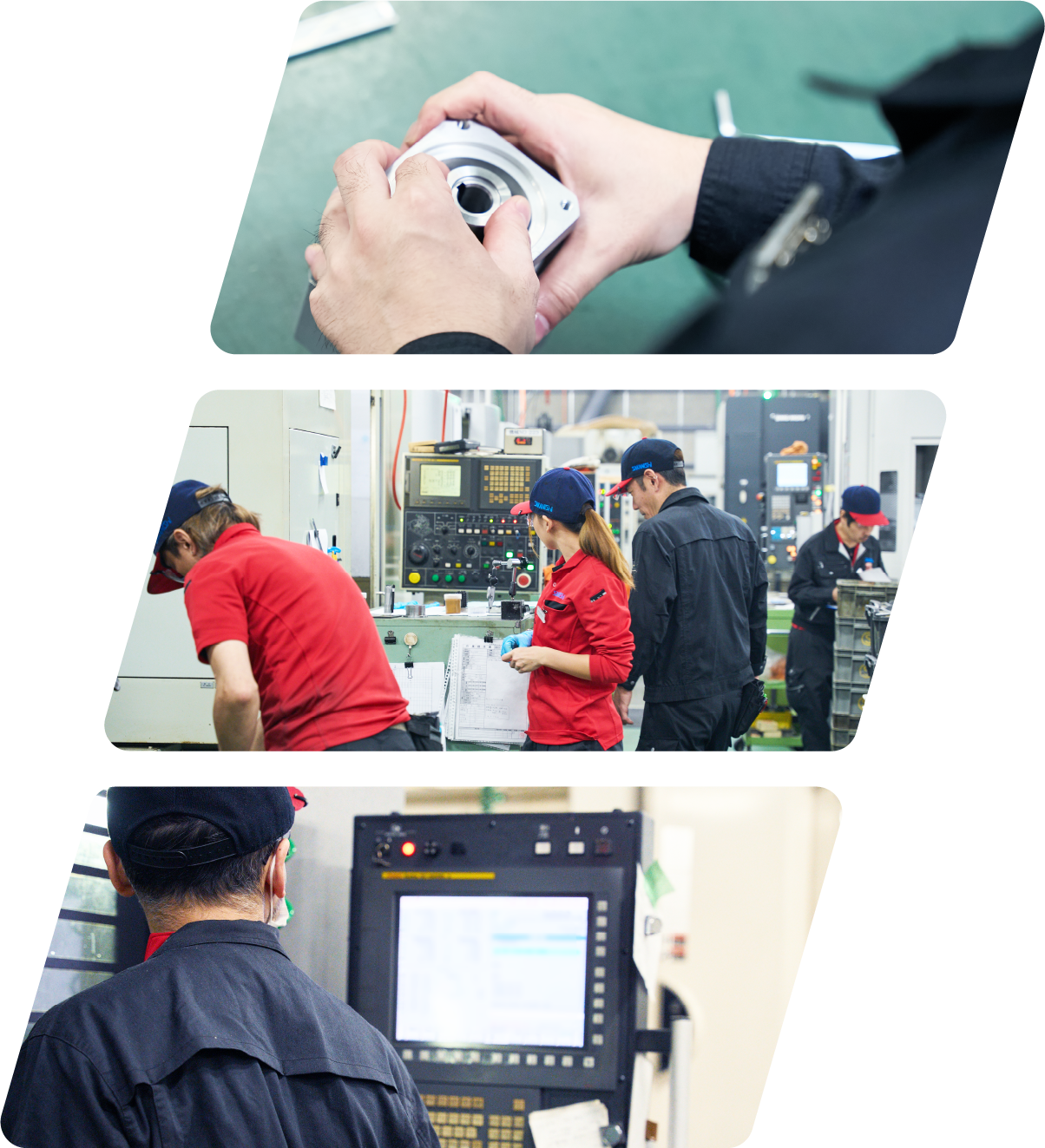 また、協力工場とのネットワークにより、材料、熱処理、表面処理、機械加工および組立の一貫した体制を構築しています。